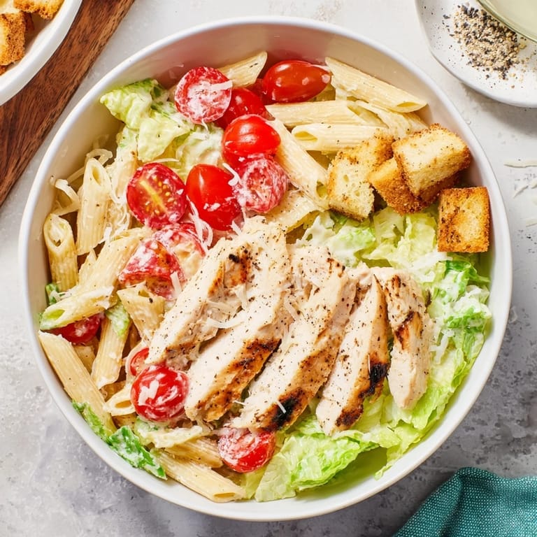 My roommate walked in while I was tossing everything together and immediately asked for a bowl. The way the Caesar dressing clings to the pasta while still coating the lettuce is something I discovered by accident when I was too lazy to make separate sides.