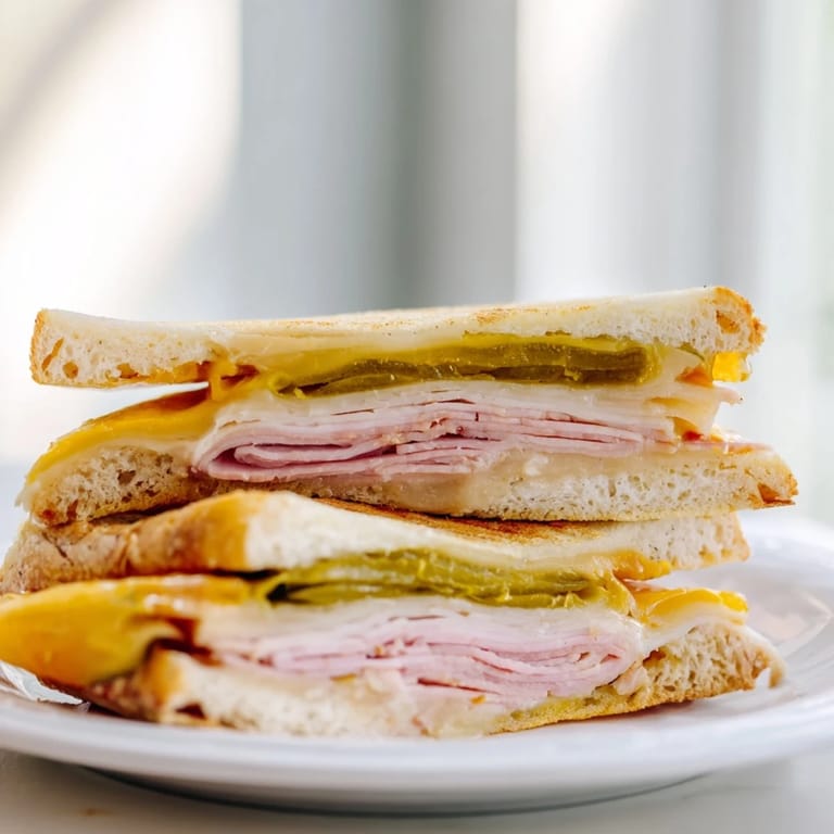Save to Pinterest The first time I bit into an authentic Cuban sandwich, I was standing in a small cafeteria in Miami on a humid afternoon, and the contrast of that crispy-on-the-outside, impossibly soft-on-the-inside bread against the warm, melted cheese and layered meats stopped me mid-conversation. My friend laughed at my expression and said, "Yeah, that's the look everyone gets," and I understood why this sandwich has been a cornerstone of Cuban cuisine for generations. It's not fancy or complicated, but it's absolutely unforgettable.