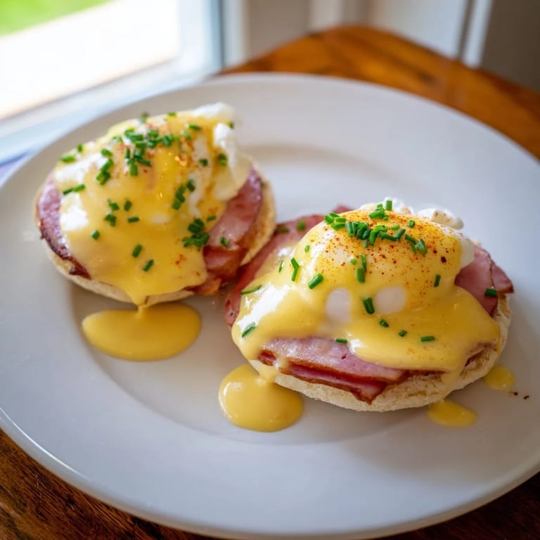 Save to Pinterest The first time I really understood brunch was when my friend Sarah invited me to her kitchen on a lazy Sunday morning, and she casually mentioned making Eggs Benedict like it was no big deal. Watching her move between the stove and counter with such ease, I realized this dish wasn't fancy because of complicated techniques—it was elegant because each element, when done right, tastes like it was made just for you. That hollandaise sauce, silky and rich, changed how I thought about breakfast entirely.