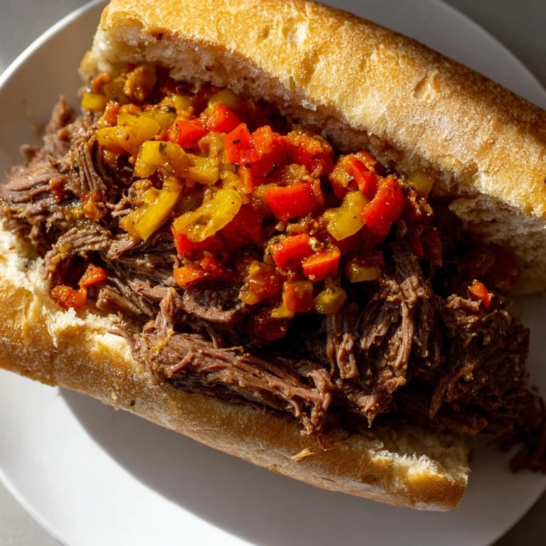 That sharp, spicy, pickled vegetable mixture isn't just a topping—it's the reason this sandwich works at all. Without it, you'd have a very good braised beef sandwich, but with it, you have something that's greater than the sum of its parts. The acidity wakes up your palate, the heat cuts through the richness, and the crunch provides textural contrast to all that tender meat. I learned this the hard way by trying to make a version without it once, thinking I could substitute with fresh peppers, and it just felt incomplete and heavy. Now I understand that giardiniera is what makes this specifically Chicago and specifically worth making.