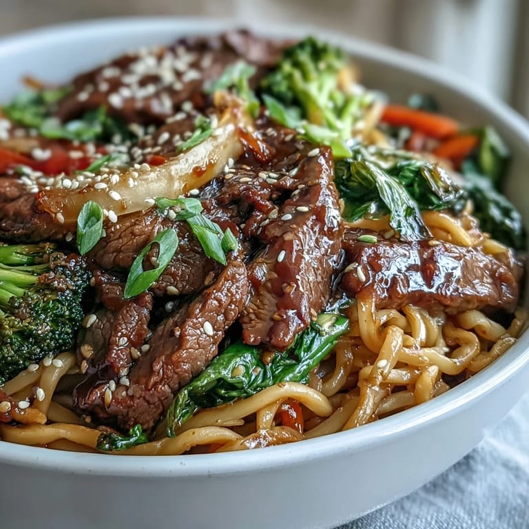 Save to Pinterest My neighbor knocked on my door one Thursday evening holding a takeout container and asked if I'd ever tried Korean beef noodles. The smell alone—sweet, savory, and laced with sesame—made my stomach growl. She told me it was easier to make than it looked, and by the next weekend I had flank steak thawing on my counter and a wok heating on the stove. The first batch wasn't perfect; I overcooked the noodles and they clumped together like a rice brick. But the flavors were so good I didn't care, and by the third attempt I'd figured out the timing.