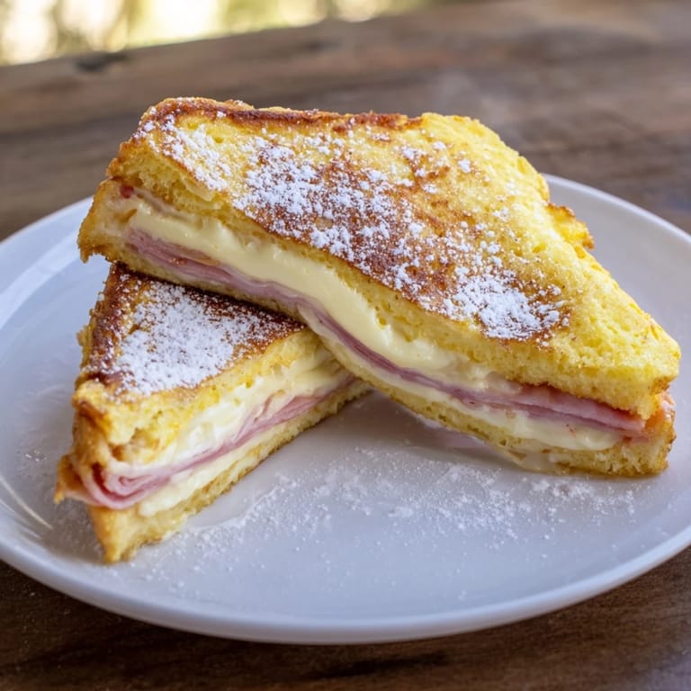 Save to Pinterest There's something about the Monte Cristo that stops me mid-stride every time. My roommate in college made one on a random Tuesday morning, the kind when you're running late but can't resist the smell of butter hitting a hot pan. She'd found the recipe in some old cookbook, and watching her dip that sandwich into egg batter like it was the most natural thing in the world made me understand why this dish has survived generations. The powdered sugar dusting at the end caught me completely off guard—sweet on savory, and suddenly breakfast felt like dessert. I've made it probably fifty times since, and it never loses that small magic.
