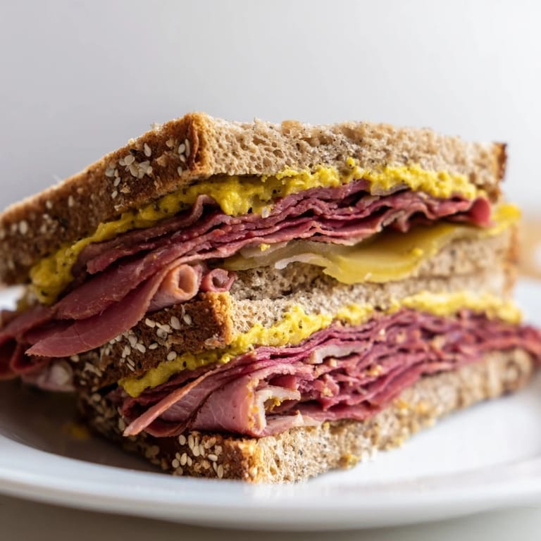 Save to Pinterest There's something about a proper pastrami on rye that stops you mid-conversation. I learned this the hard way at a crowded deli counter in Manhattan, watching a guy in a suit close his eyes on the first bite like he'd just solved a problem he'd been carrying all week. The sandwich wasn't complicated—just meat, mustard, bread—but the simplicity felt like a secret. When I got home, I realized I didn't need a reservation or a line out the door to recreate that moment in my own kitchen.