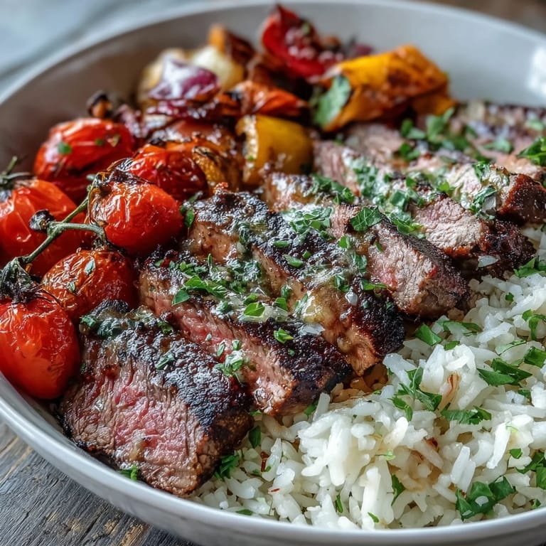 Save to Pinterest My friend texted me on a Wednesday asking if I could make dinner for four without breaking a sweat, and that's when this sheet pan masterpiece saved the day. I'd been eyeing a way to get steak, vegetables, and rice all cooking at once without turning my kitchen into a disaster zone. The first time I pulled everything out of that single pan, still sizzling and golden, I realized I'd stumbled onto something that felt both impressive and ridiculously simple.