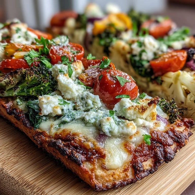 The beauty of this Rainbow Veggie Flatbread Pizza lies in its versatility and visual appeal. Using naan or flatbread as the base makes preparation quick and eliminates the need for yeast or dough-making skills. The creamy hummus or herbed cream cheese provides a flavorful foundation that's lighter than traditional pizza sauce, while the combination of melted mozzarella and tangy feta adds just the right amount of richness. Each colorful vegetable not only contributes to the rainbow effect but also brings its own unique flavor and nutritional benefits to every bite.